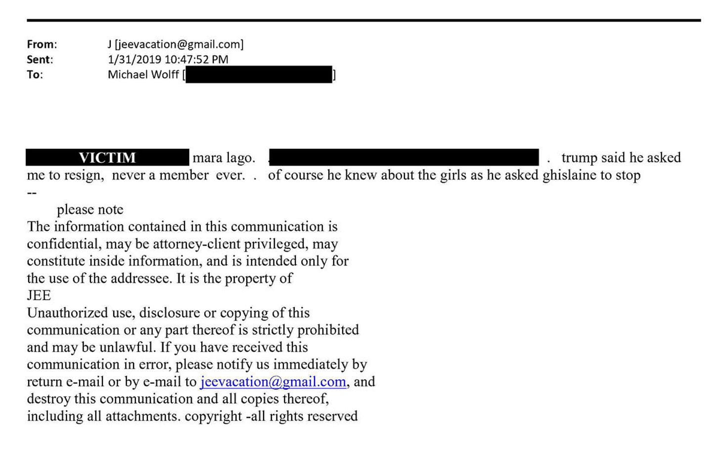 Trump “has never once been mentioned,” he wrote to Maxwell.