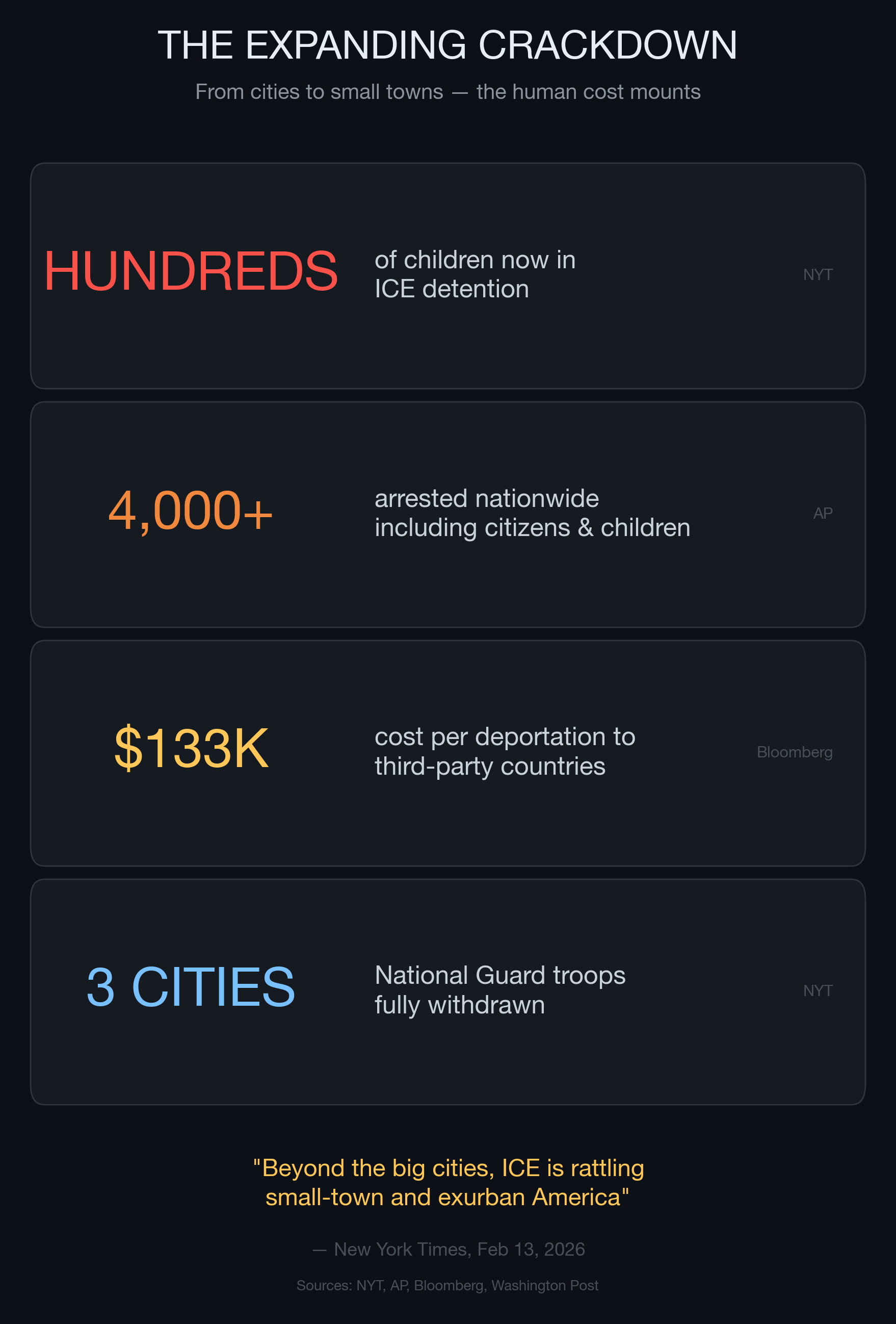 As the DHS shutdown freezes the political fight, the human consequences of the immigration crackdown continue to deepen across the country.