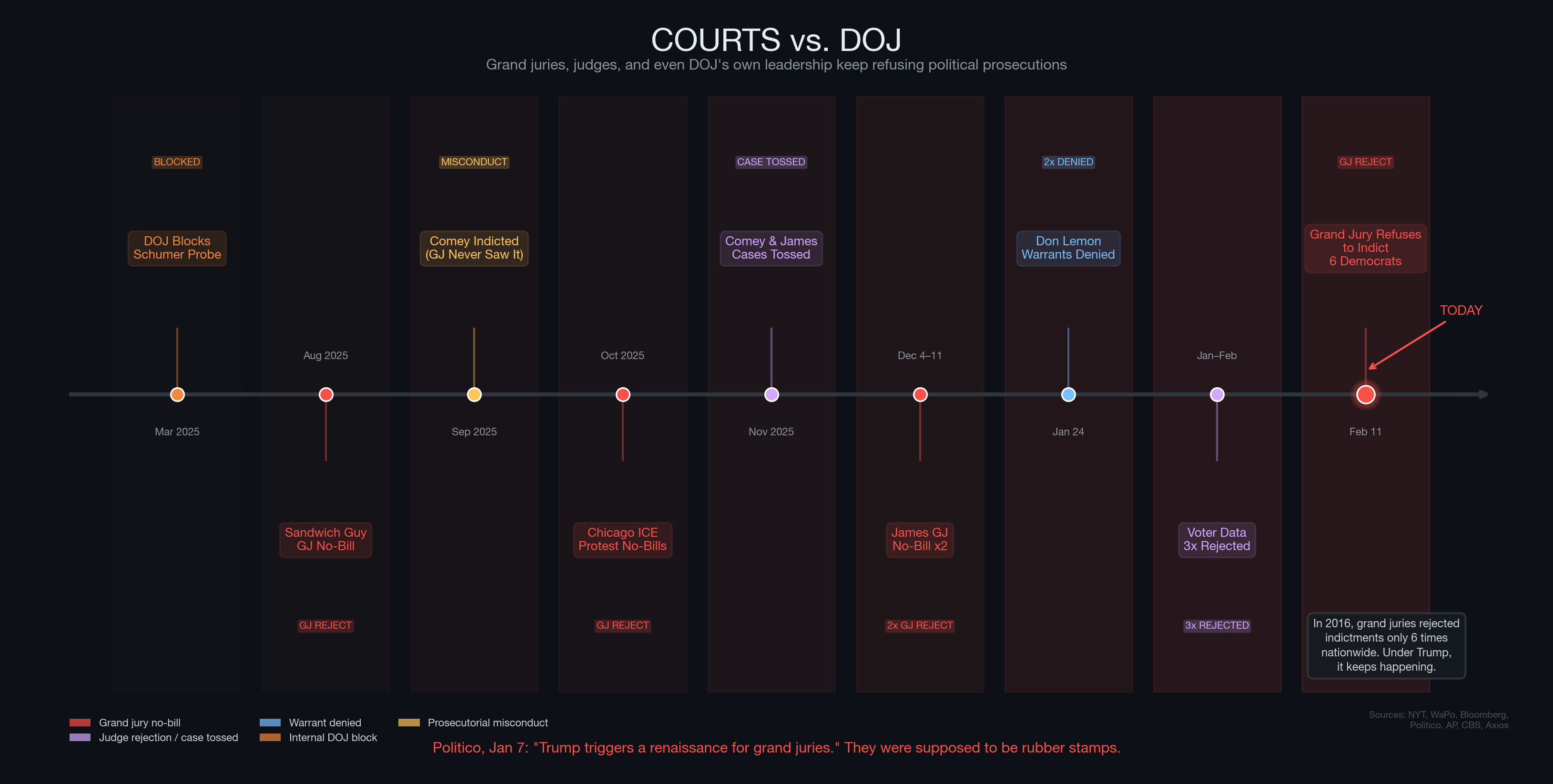 Grand juries have rebuffed DOJ requests with increasing frequency under Trump. (NYT, AP)