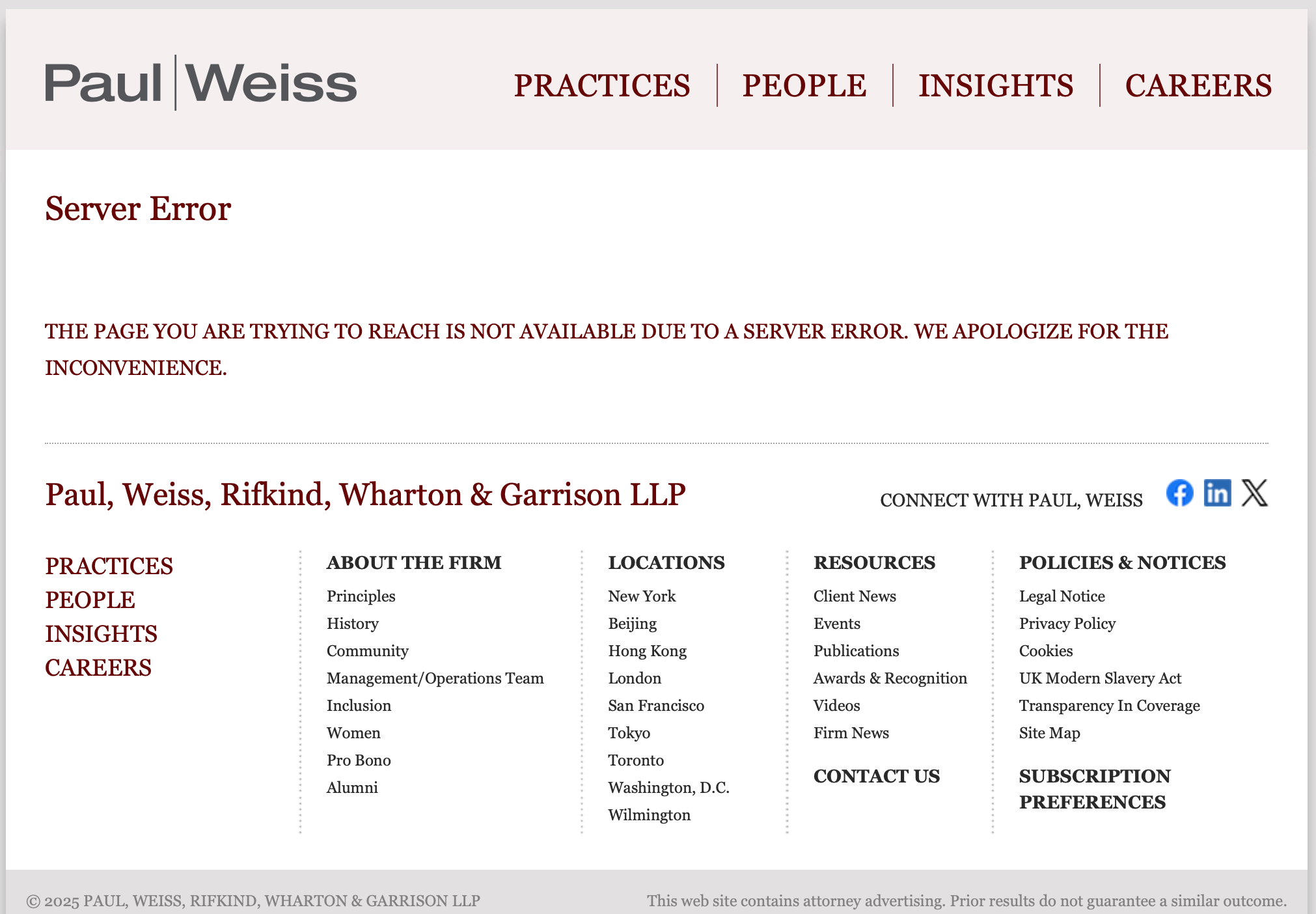 Paul Weiss used to have a section on its site about “Diversity, Equity and Inclusion.” Now, it’s just about “Inclusion.” They used to brag that “[m]ost elite law firms profess a devotion to diversity and inclusion, but none can match Paul, Weiss’s history of putting it into practice.”